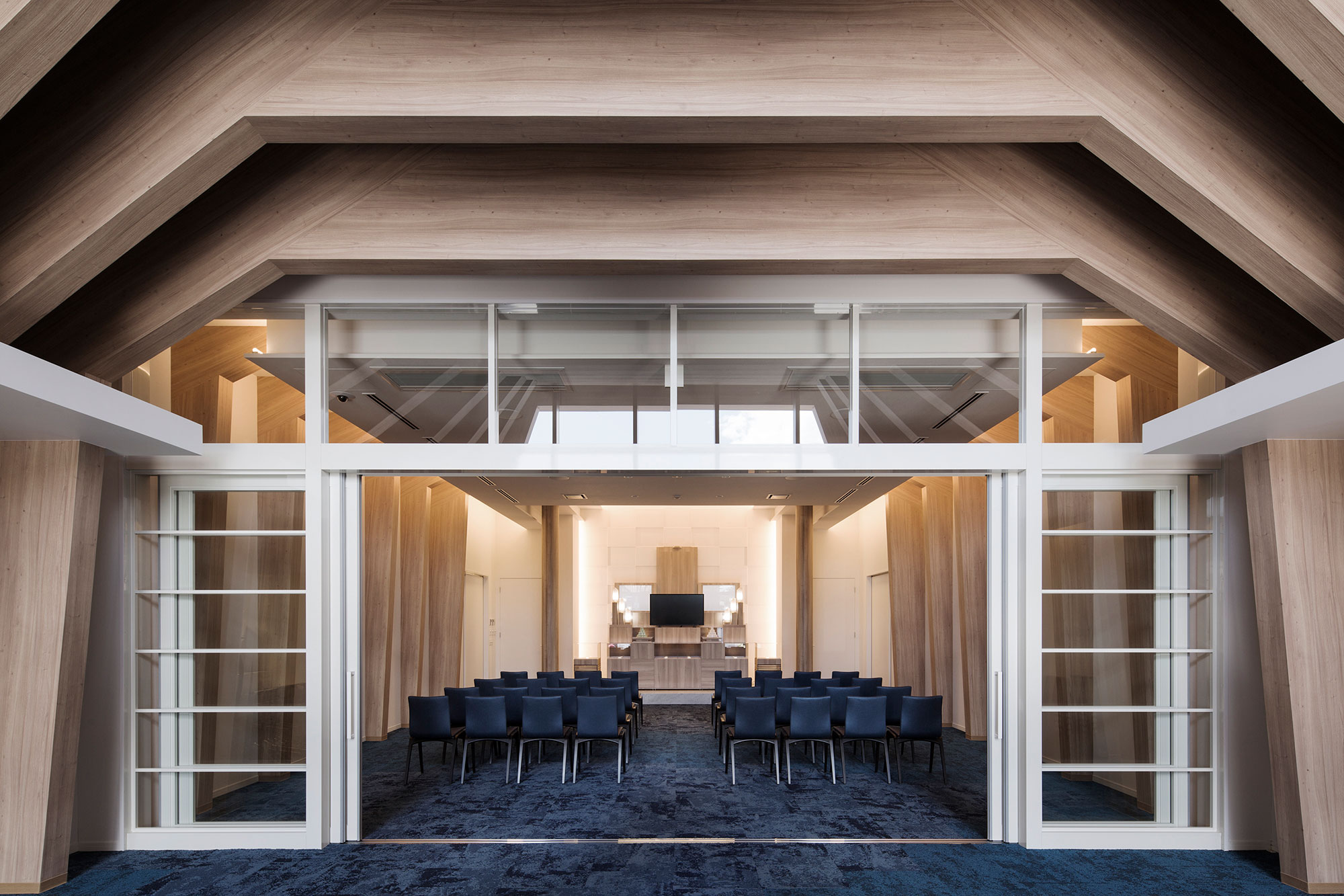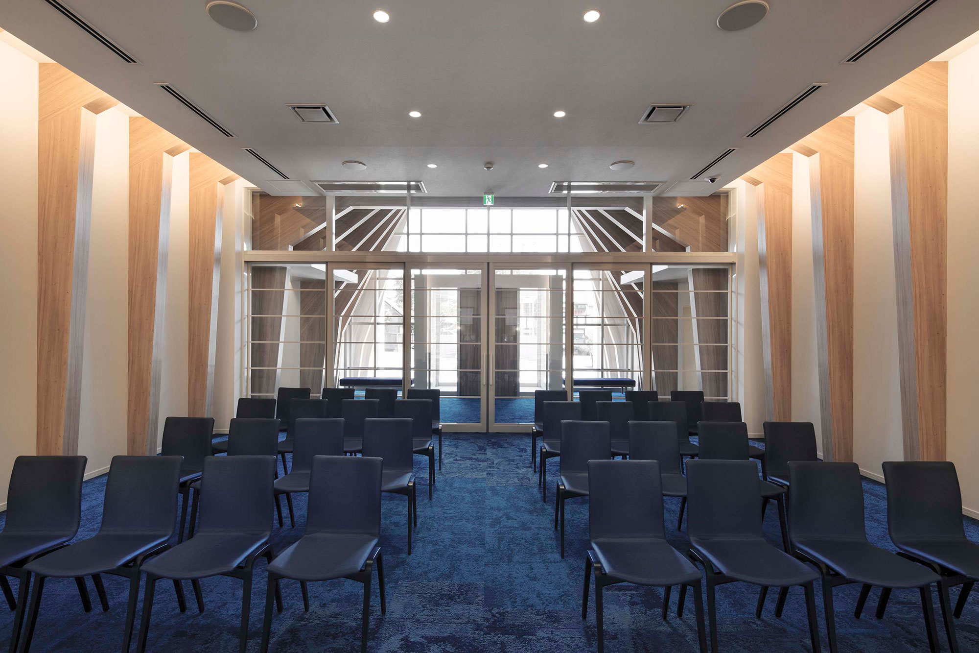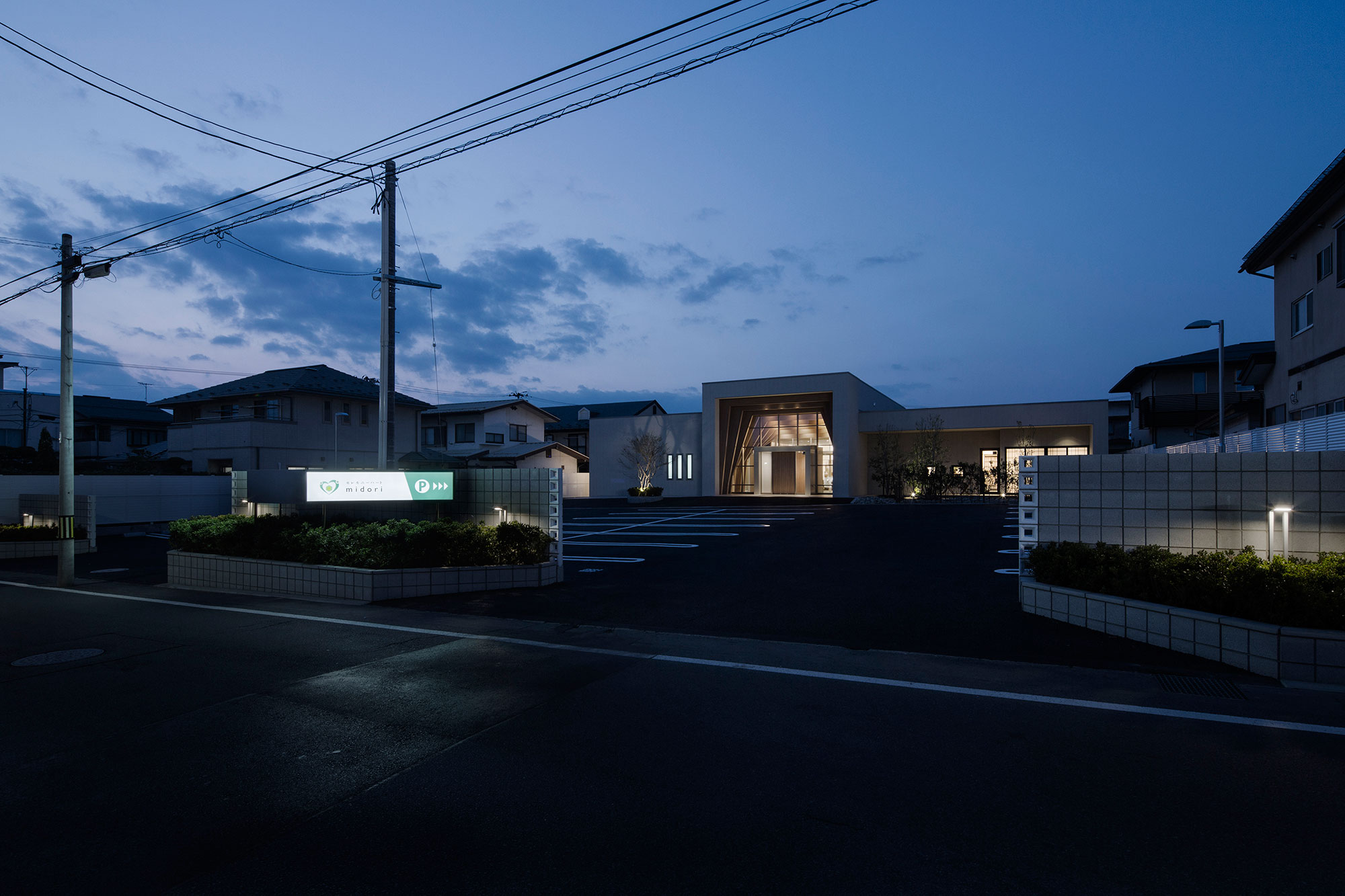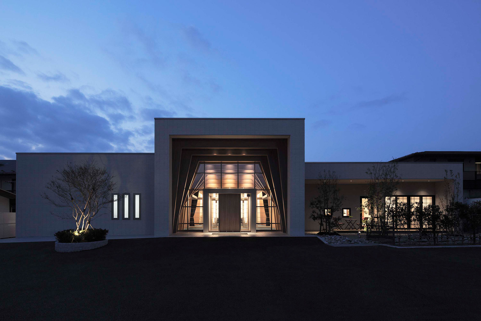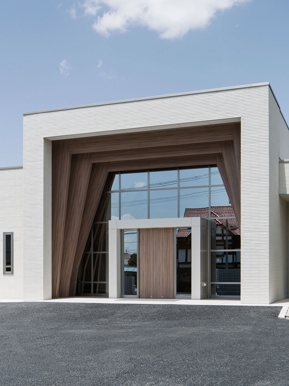 Ceremony hall for family funerals. We aimed to create a facility that matches the style of modern funerals by compactly organizing ceremonial halls, legal offices, and accommodation rooms. Although it has a symbolic design, it has a calmness that makes you feel the appearance of a house.