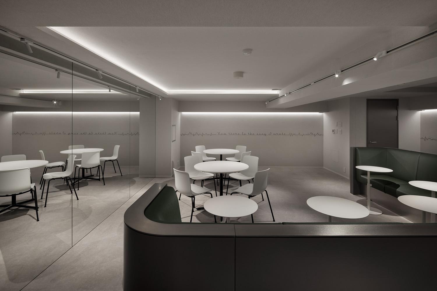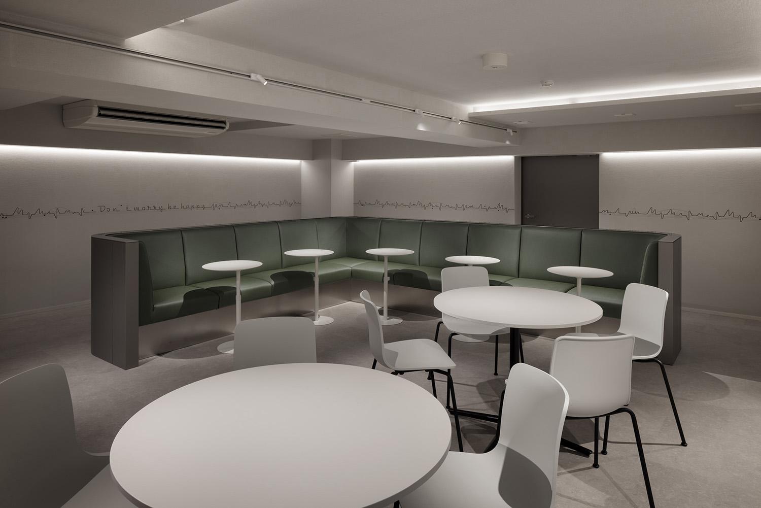 壁に浮かぶのは「DON′ T WORRY BE HAPPY」――シンプルで、どこか懐かしい言葉。ピクセルで描かれたこのフレーズは、リズムのように、鼓動のように静かに空間に響く。ここは、住まう人の誰もが少しだけ“力を抜ける” ための場所。表現する人も、つながる人も、ただ静かに過ごす人も。ひとりでいても、誰かといても、自分のテンポに戻れる。そんな、心の余白をつくる共用空間となる。