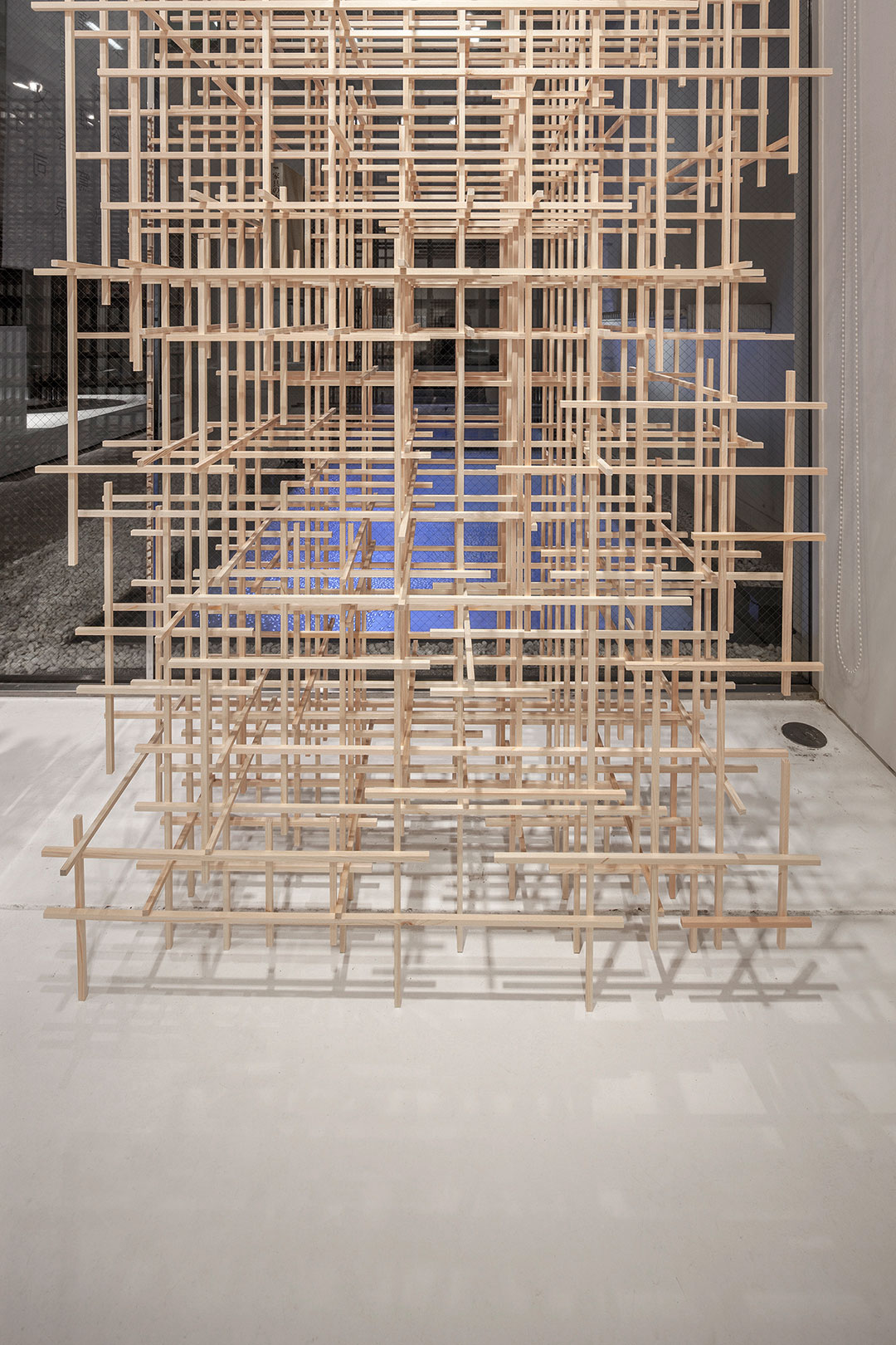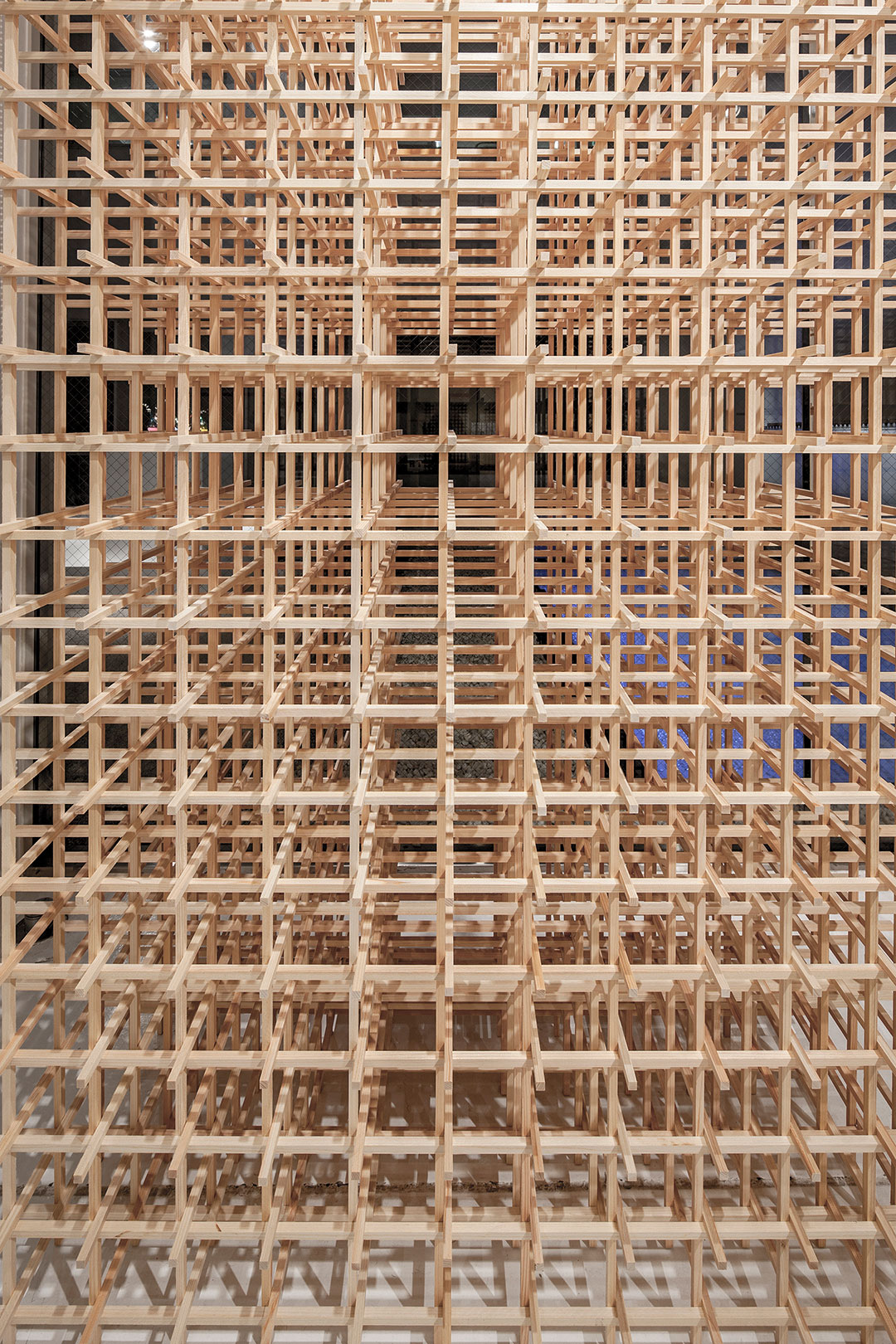Woven fabrics are made by combining straight threads with weft and warp, which can be said to be the origin of horizontal and vertical structures in architecture. Crossing straight things at right angles as a model is one of the "tools" that human beings have acquired in the natural world.