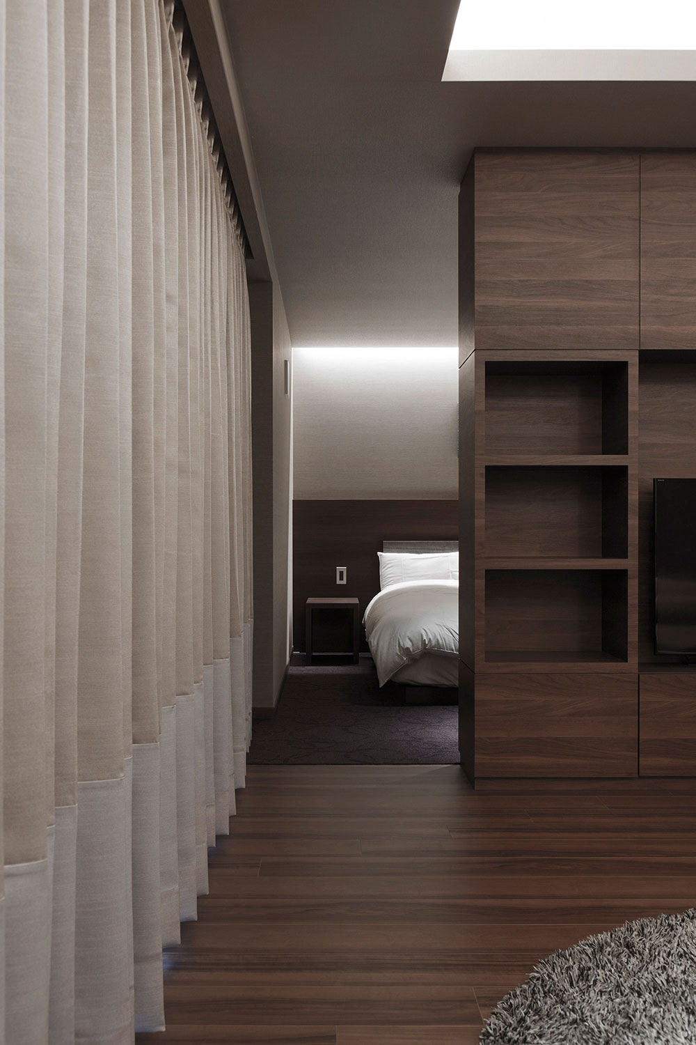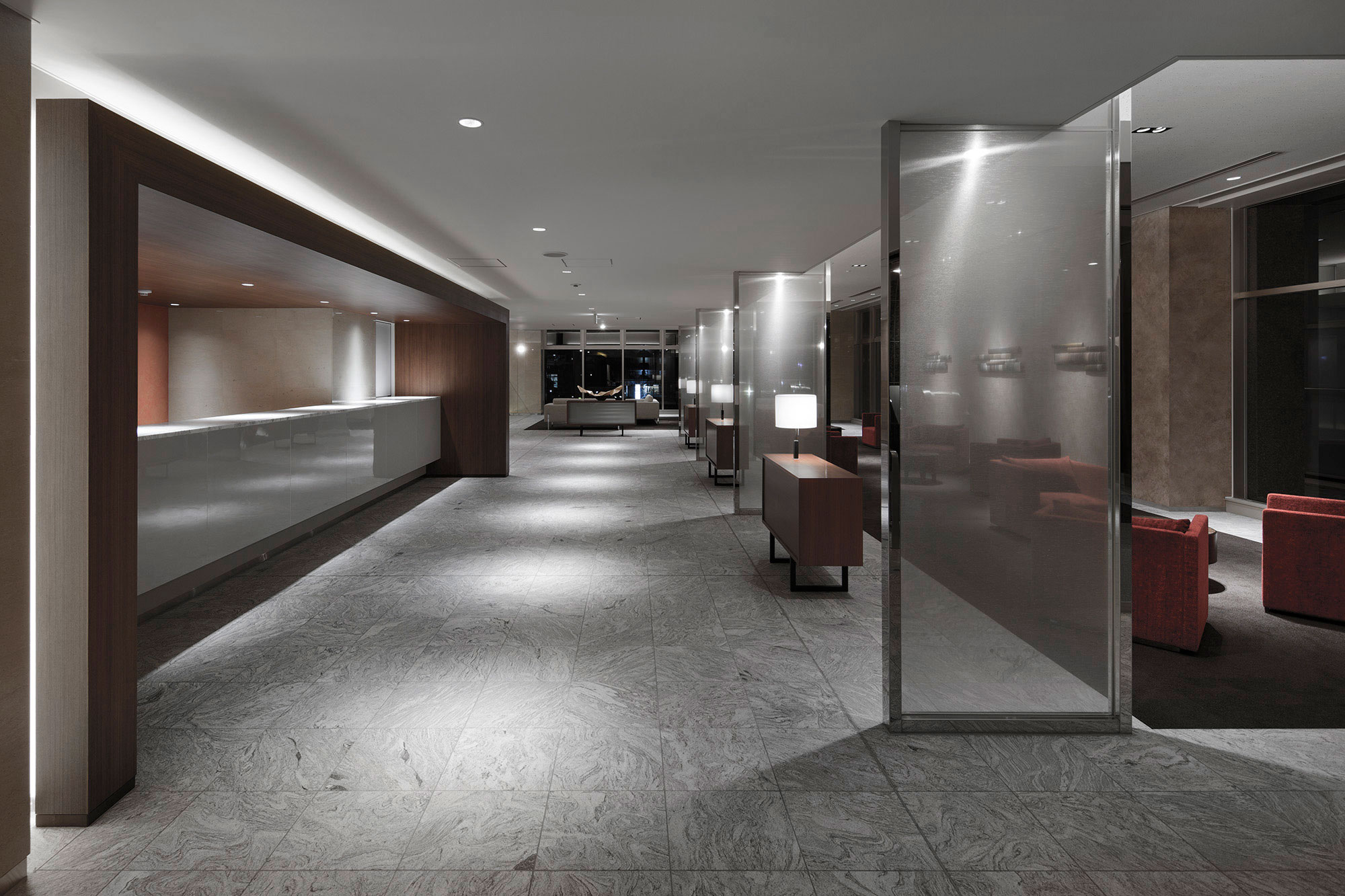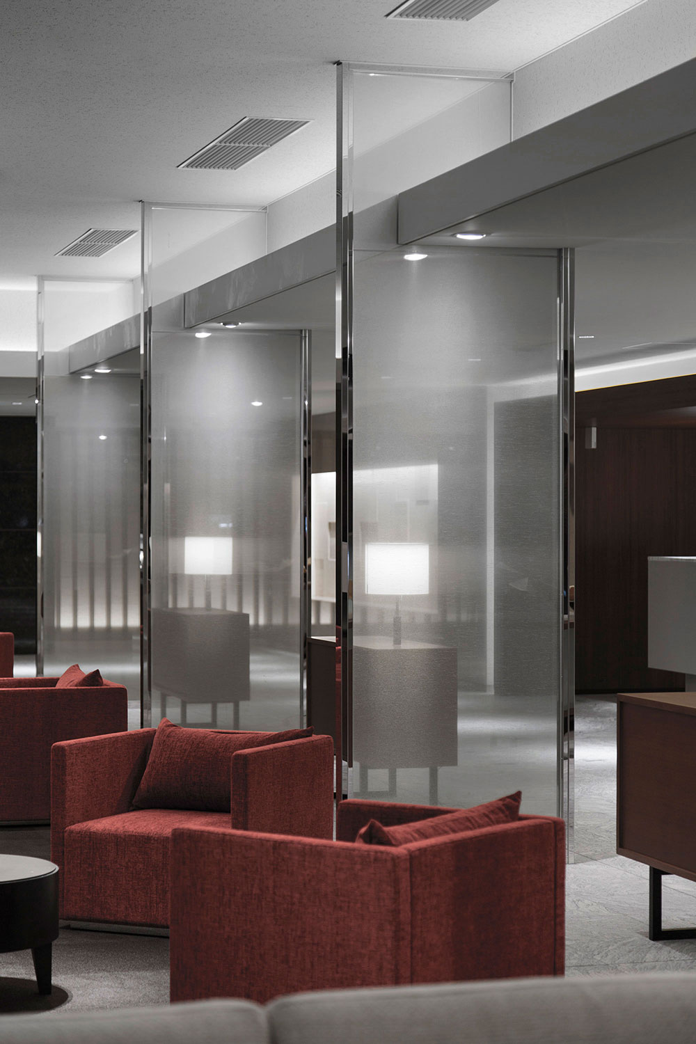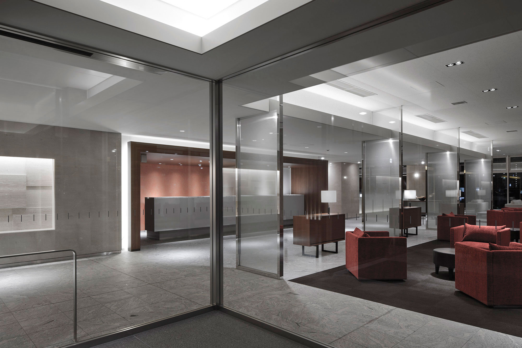The entrance hall of the large space creates a well-balanced "between" by gently partitioning the space using glass partitions. In the Sky Lounge, about 6 meters is a dynamic space with a symbolic layout of counters. The guest rooms are also devised to partition the space so that it can be used by a large number of people.