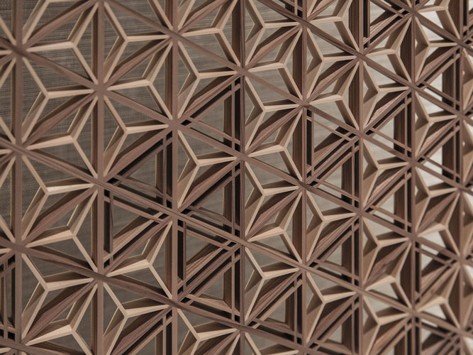 組子により表層的に印象を与えながらも、間取りは限られた空間を有効に使いやすく、心地よい空間となっている。