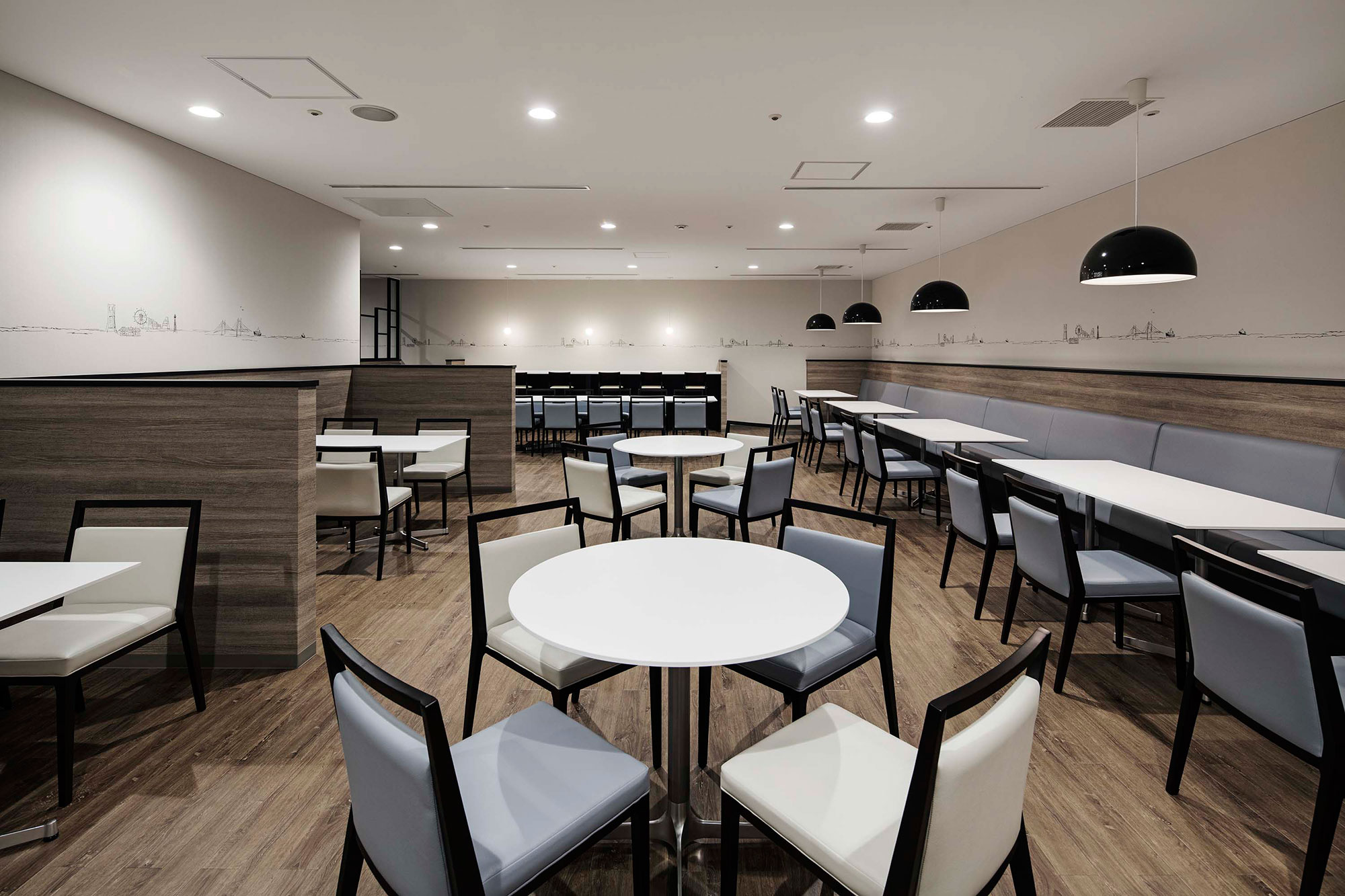 既存空間に新規のエレメントを加え、表層をリニューアルすることで、既存を生かした上質かつ効率のよい空間となっている。