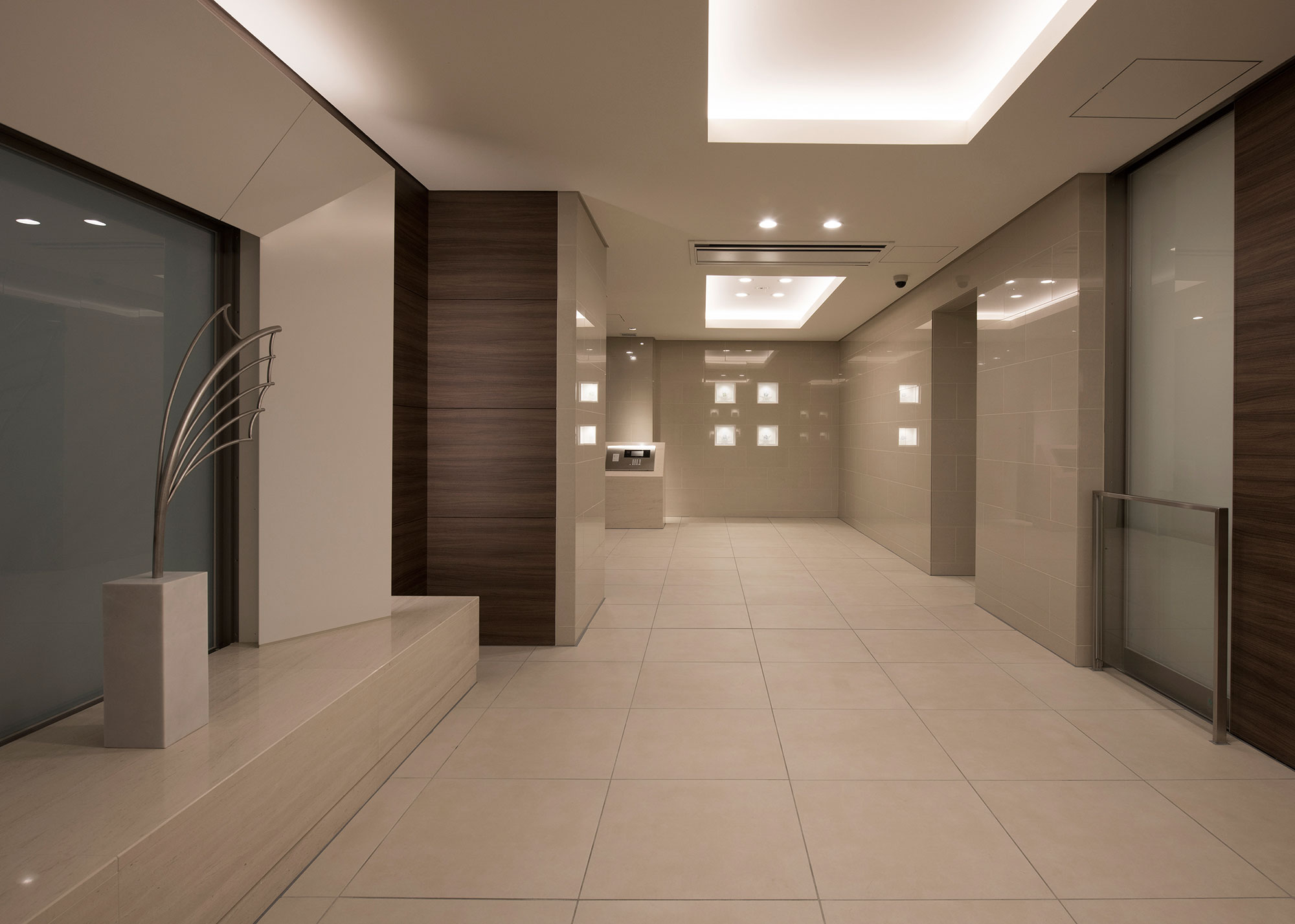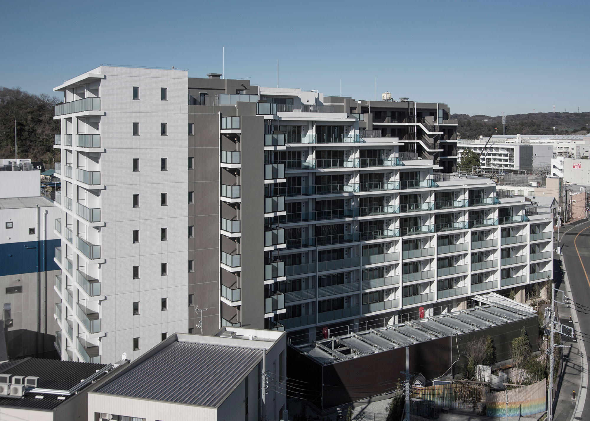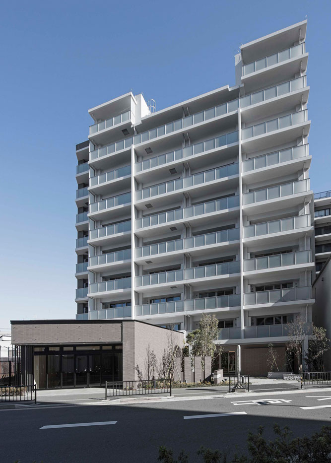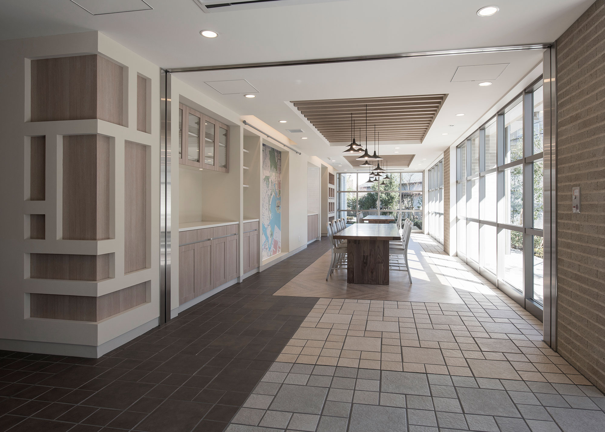水面に反射する光を受けて煌めく白い壁面が特徴となるように、明るさと爽やかさをダイナミックな構成でまとめた外観と室内空間。