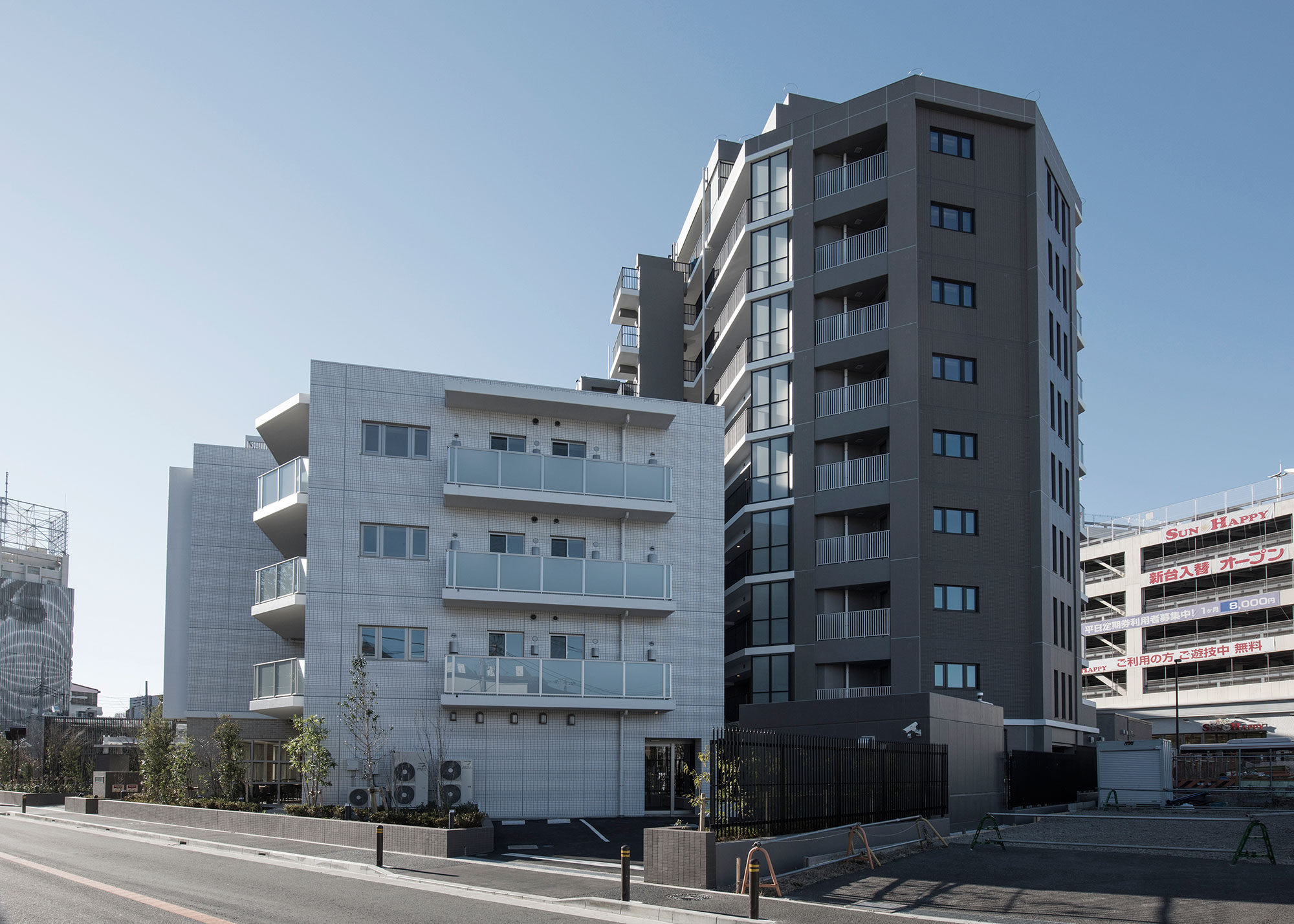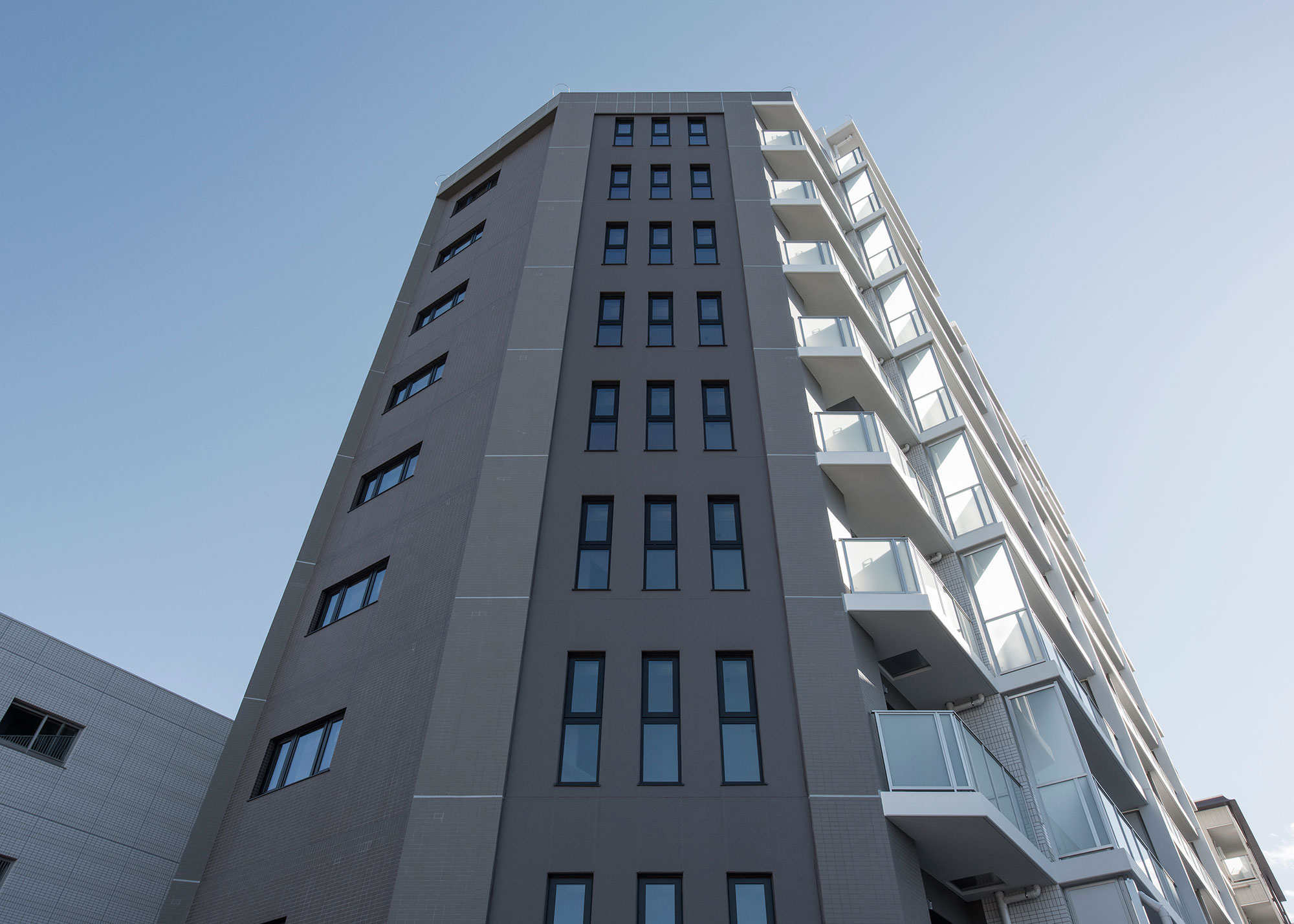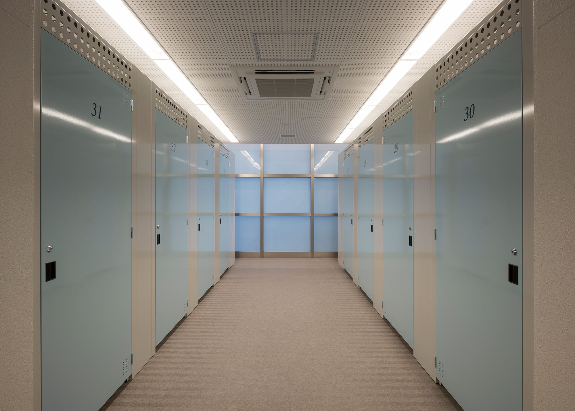 水面に反射する光を受けて煌めく白い壁面が特徴となるように、明るさと爽やかさをダイナミックな構成でまとめた外観と室内空間。