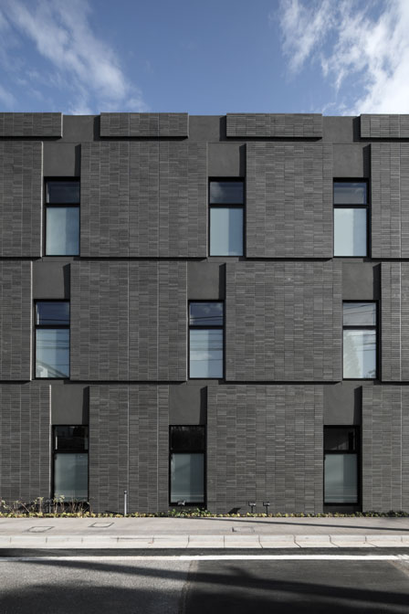 建物がもつ「存在感=volume」を「分節=segment」することで、周囲と「融和=blend」させる。幹線道路・農場(木々)・住宅街など異なる表情をもった要素と接する敷地であるため、建物がもつ必要な存在感を、視覚的に細かく区切ることで、周囲と融和することを目指した。