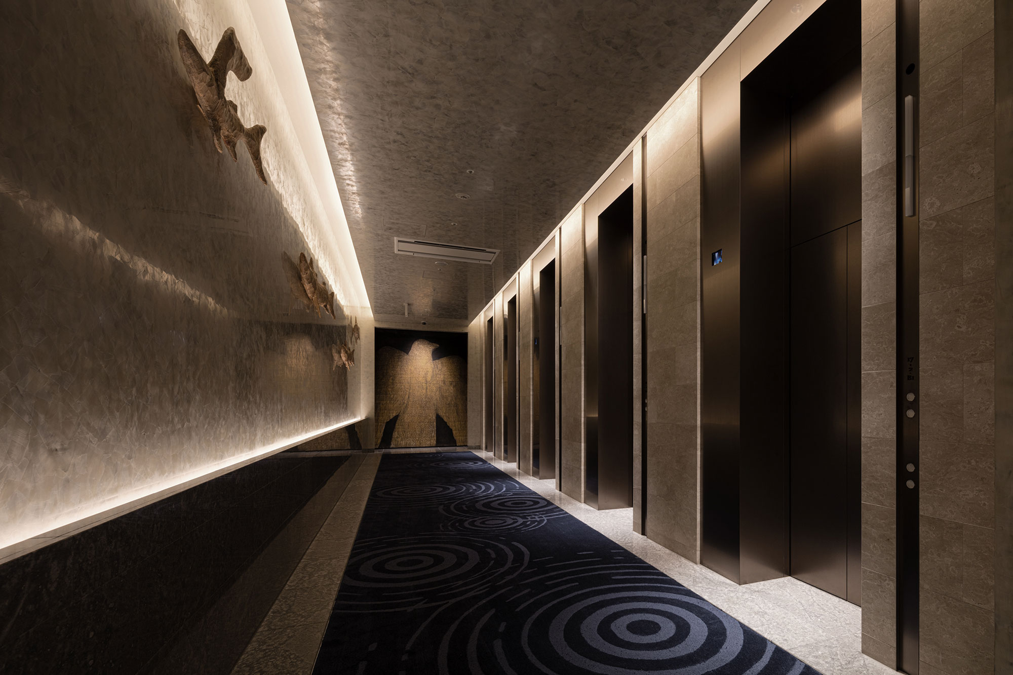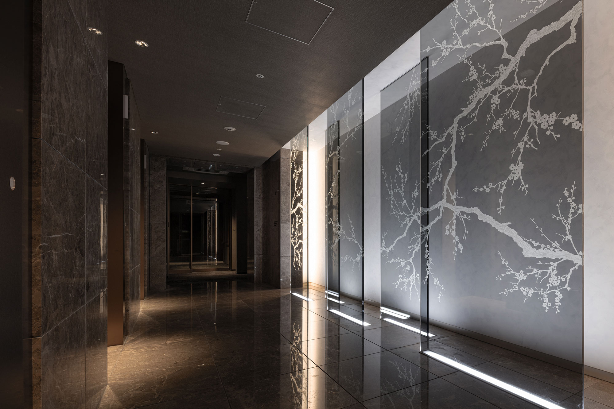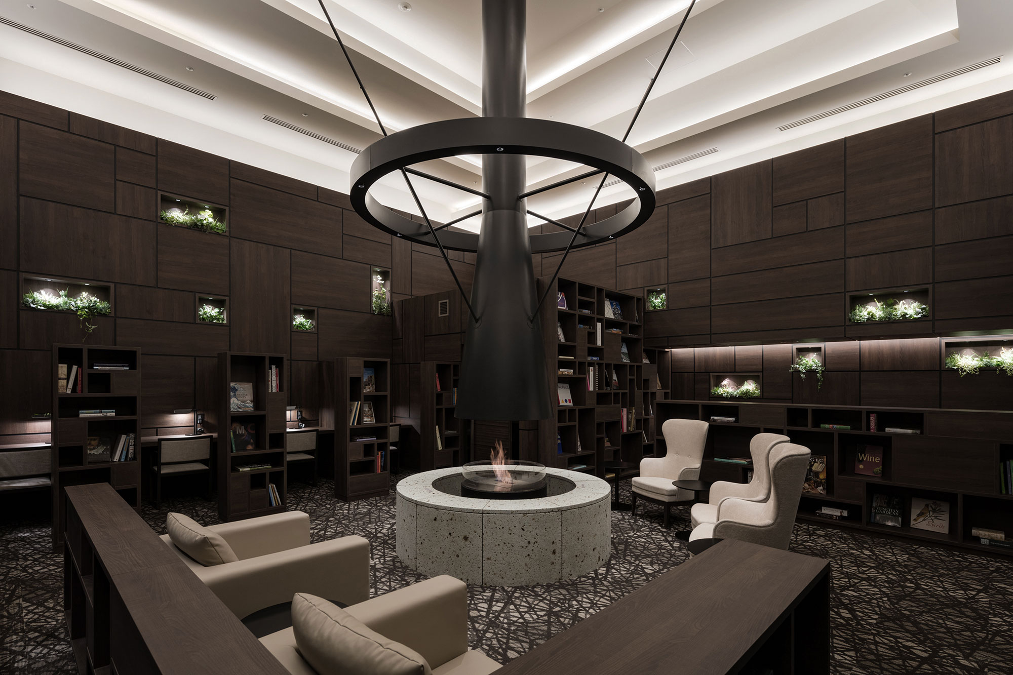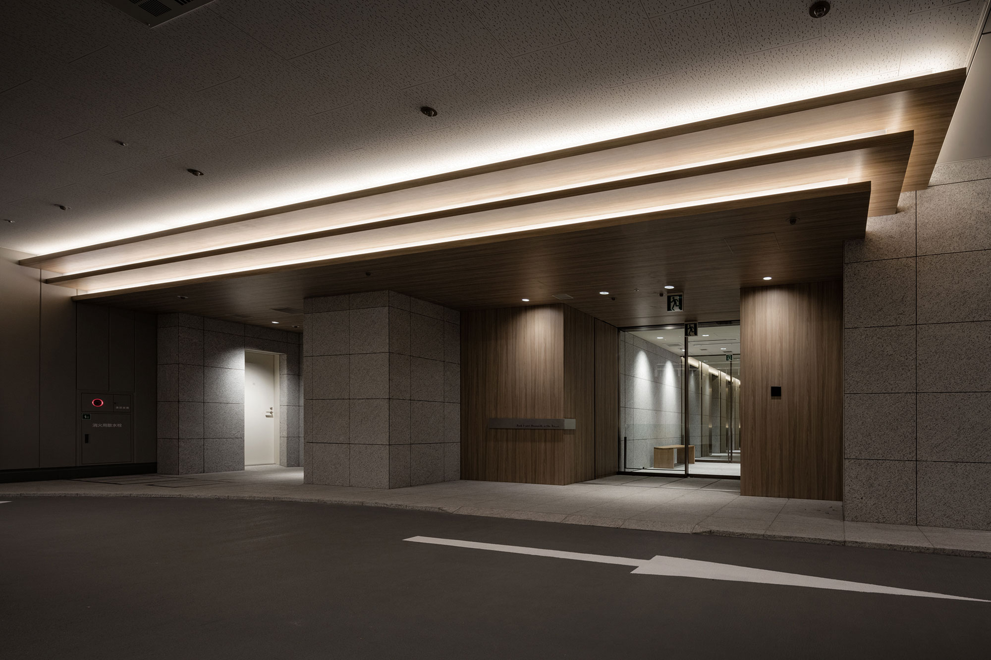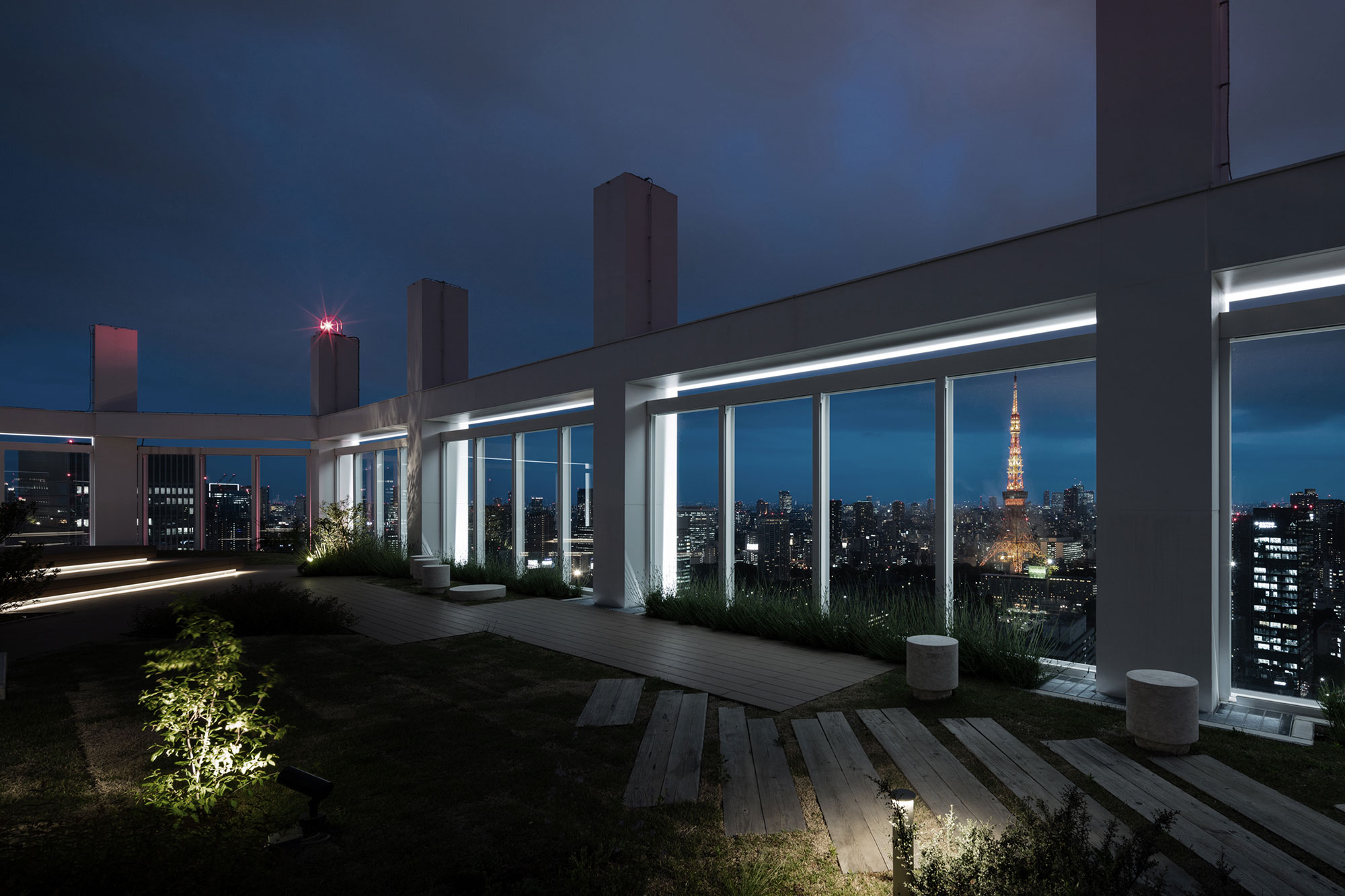 The approach-conscious entrance façade design raises expectations by seeing the lighting objects hung above the lounge at the end of the planting. We were greeted by the entrance lounge, which has a large and spacious stance that gently leads from the hustle and bustle of the urban space to a relaxing space as a "house", and high-quality light production and art elements. Connect to the exclusive department of the people who live. By folding the details that were particular about the details, we aimed for a high-quality space. And in the shared facilities that pursued the function to complement the function of the exclusive part, there are various lounges overlooking Hamarikyu, guest rooms that imitate the Shioiri pond of Hamarikyu, and a library that creates tranquility in the atrium. I was able to create it through repeated discussions. 2020 Good Design Award.