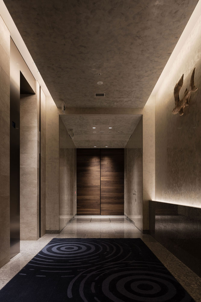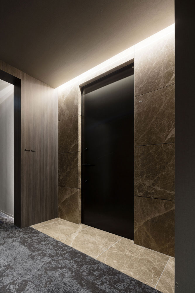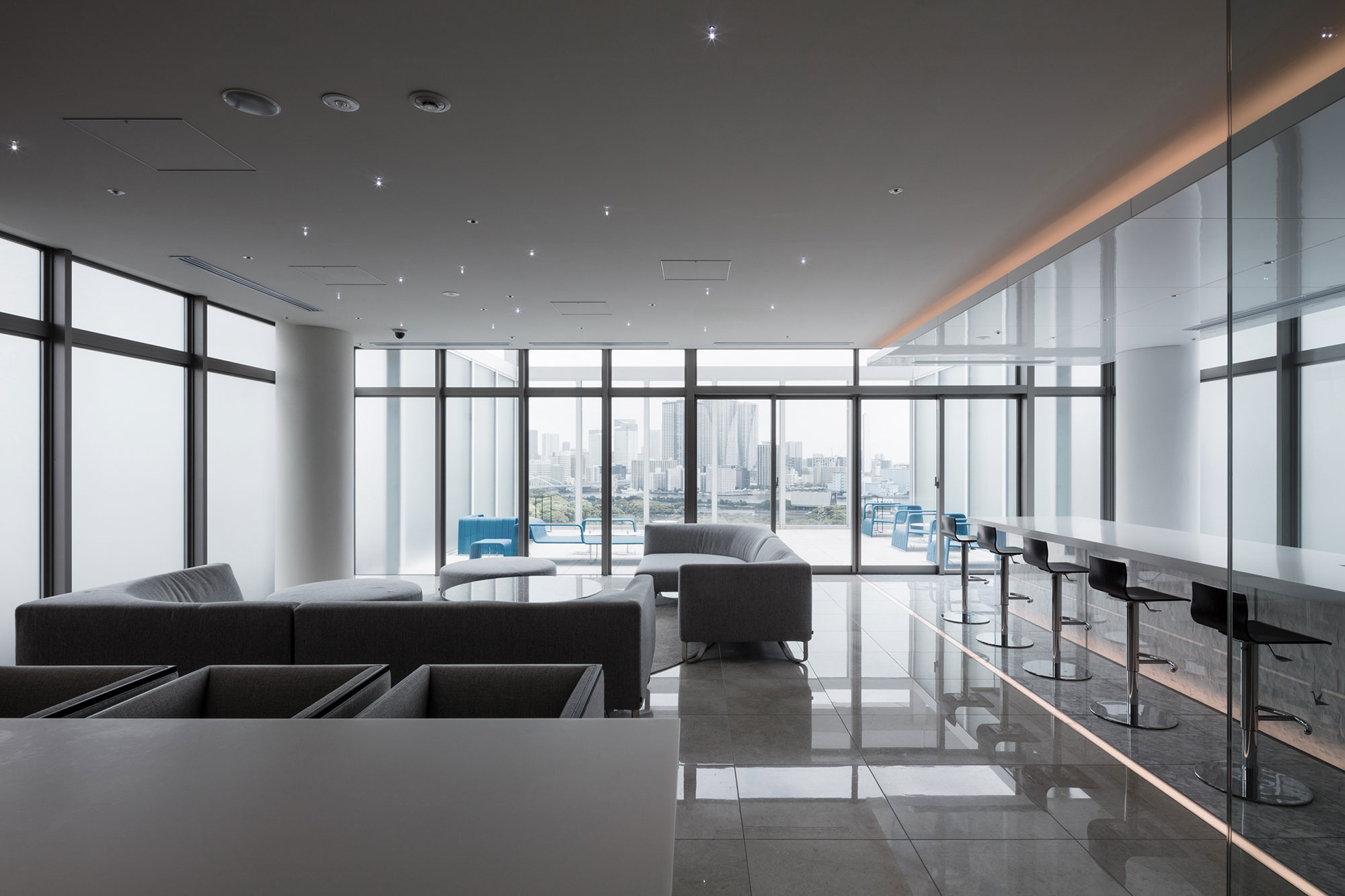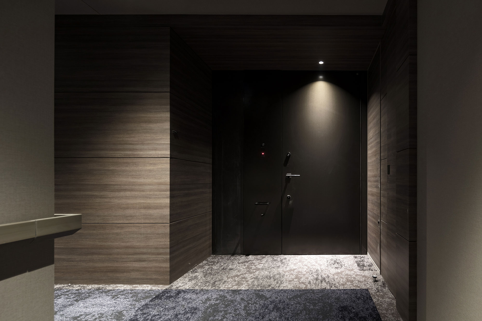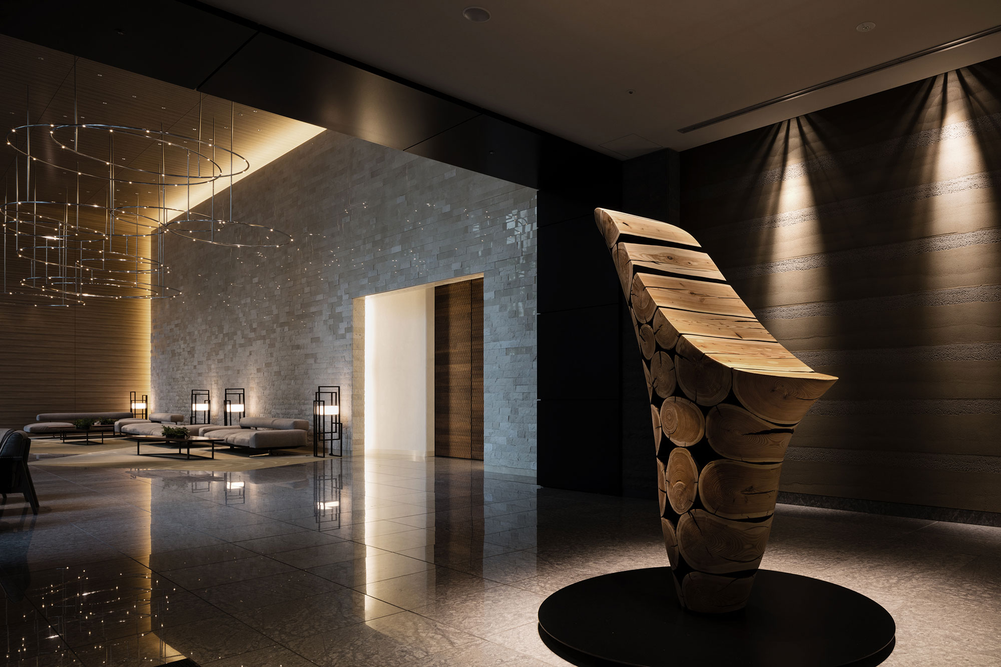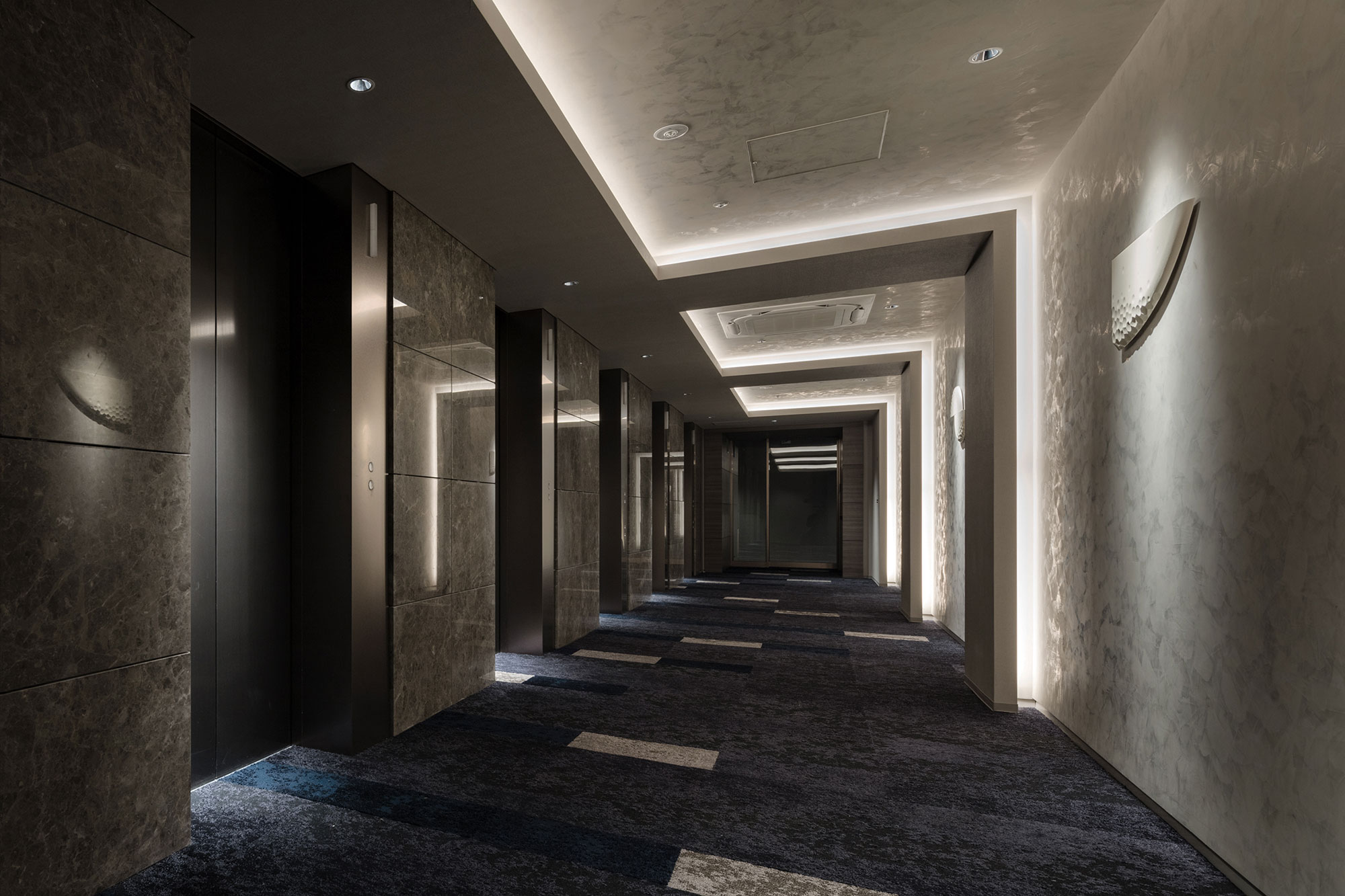 The approach-conscious entrance façade design raises expectations by seeing the lighting objects hung above the lounge at the end of the planting. We were greeted by the entrance lounge, which has a large and spacious stance that gently leads from the hustle and bustle of the urban space to a relaxing space as a "house", and high-quality light production and art elements. Connect to the exclusive department of the people who live. By folding the details that were particular about the details, we aimed for a high-quality space. And in the shared facilities that pursued the function to complement the function of the exclusive part, there are various lounges overlooking Hamarikyu, guest rooms that imitate the Shioiri pond of Hamarikyu, and a library that creates tranquility in the atrium. I was able to create it through repeated discussions. 2020 Good Design Award.