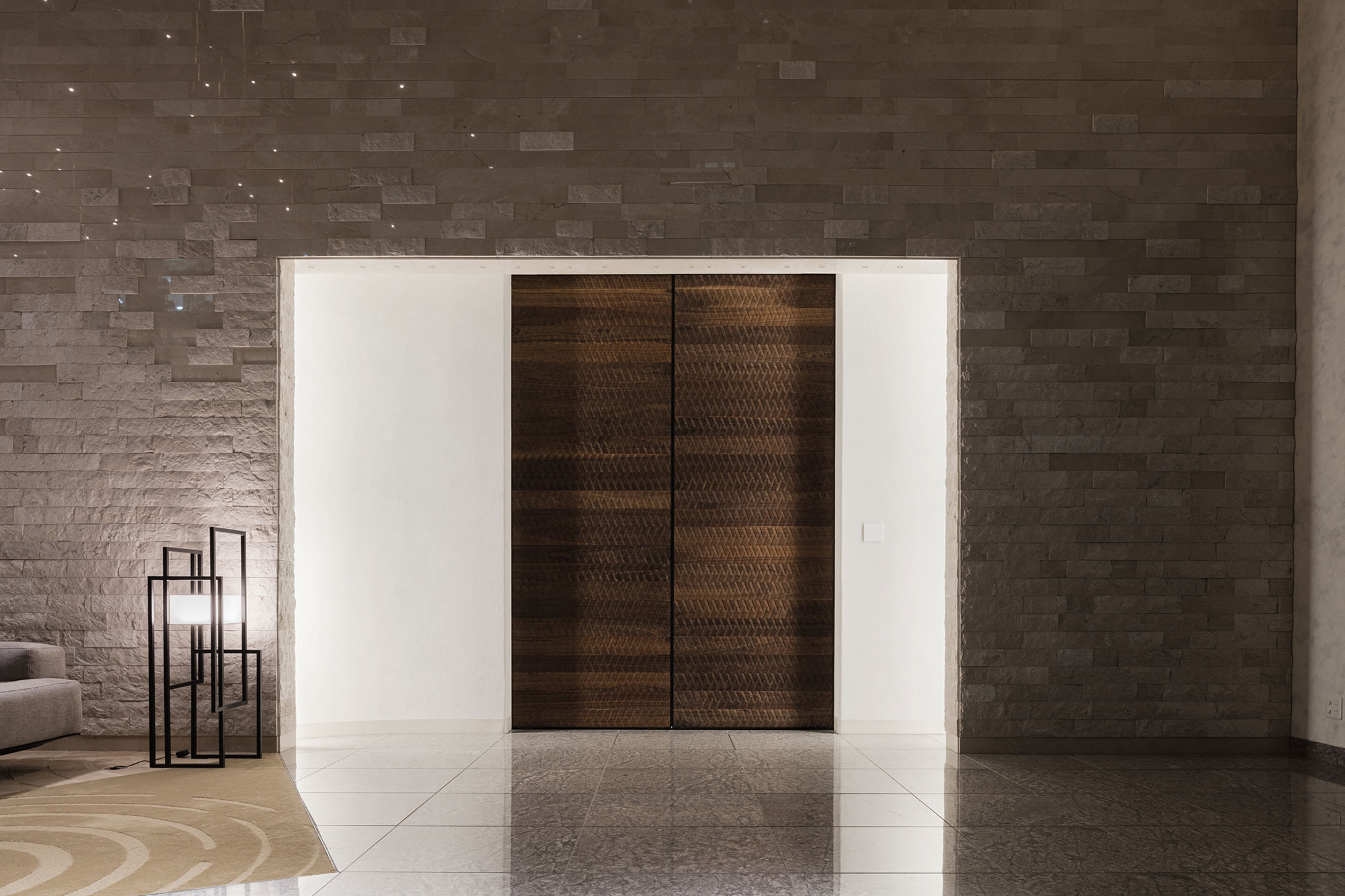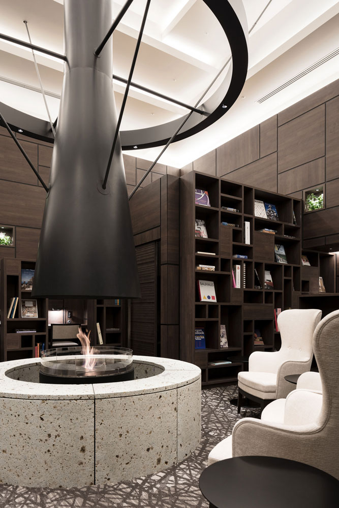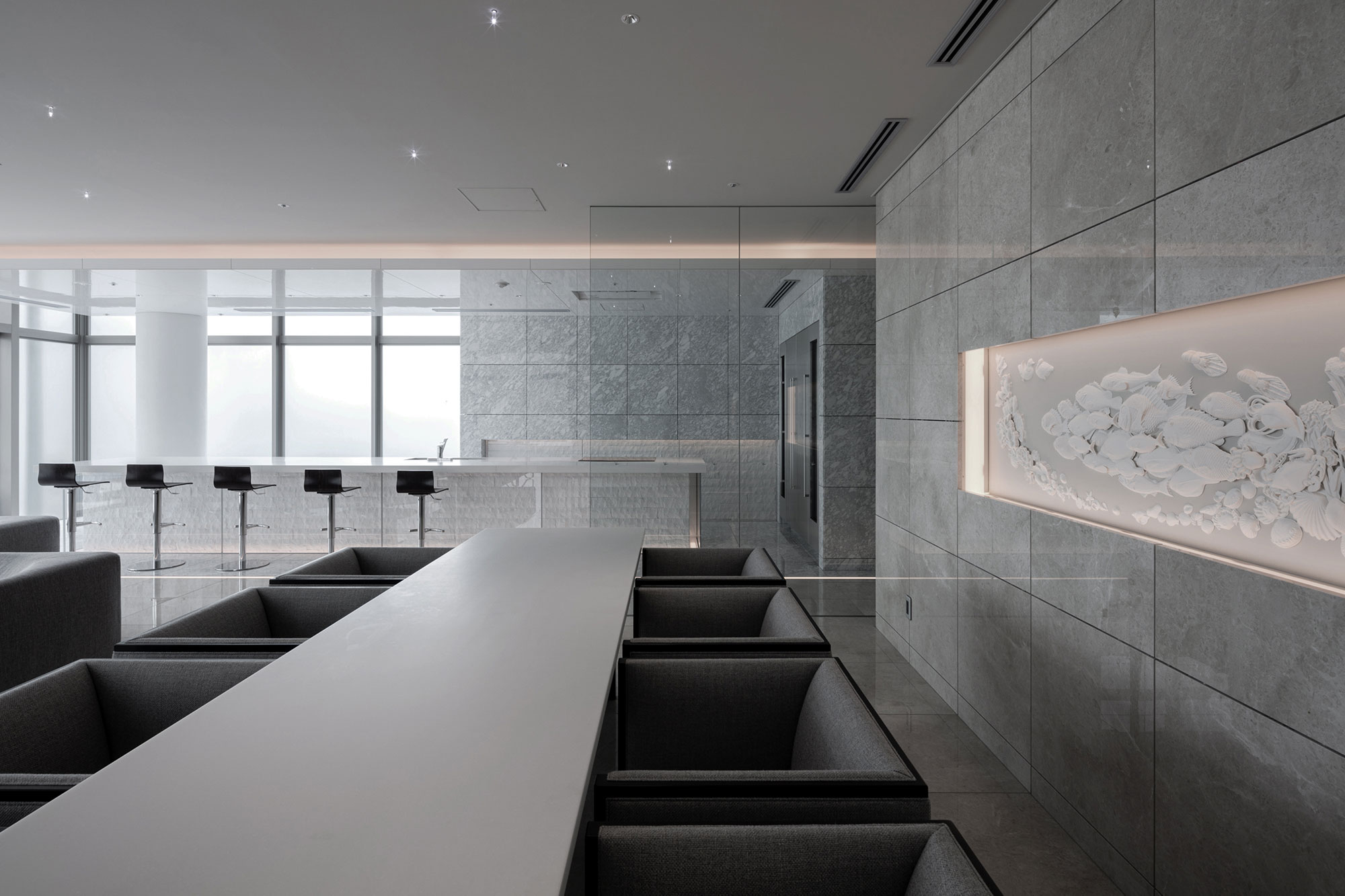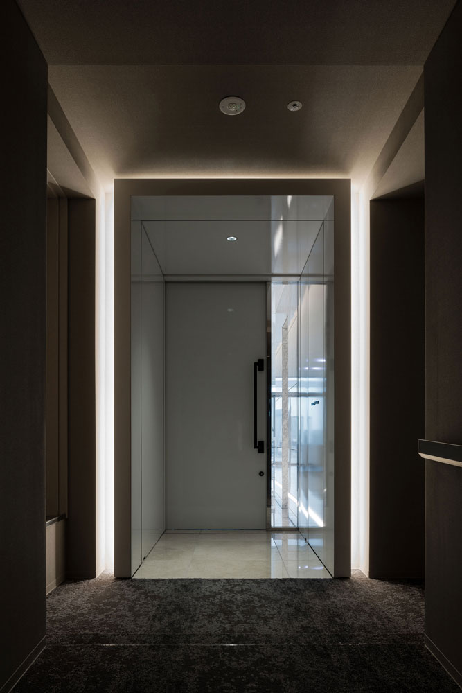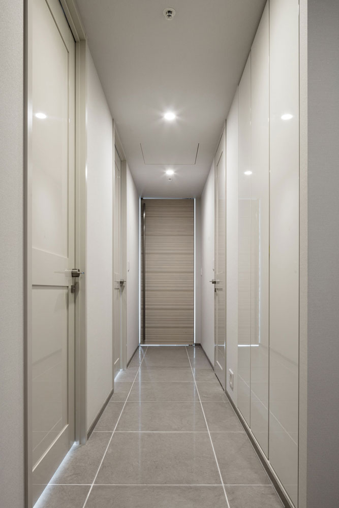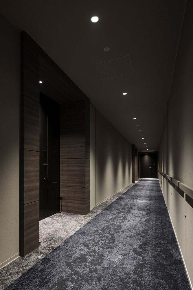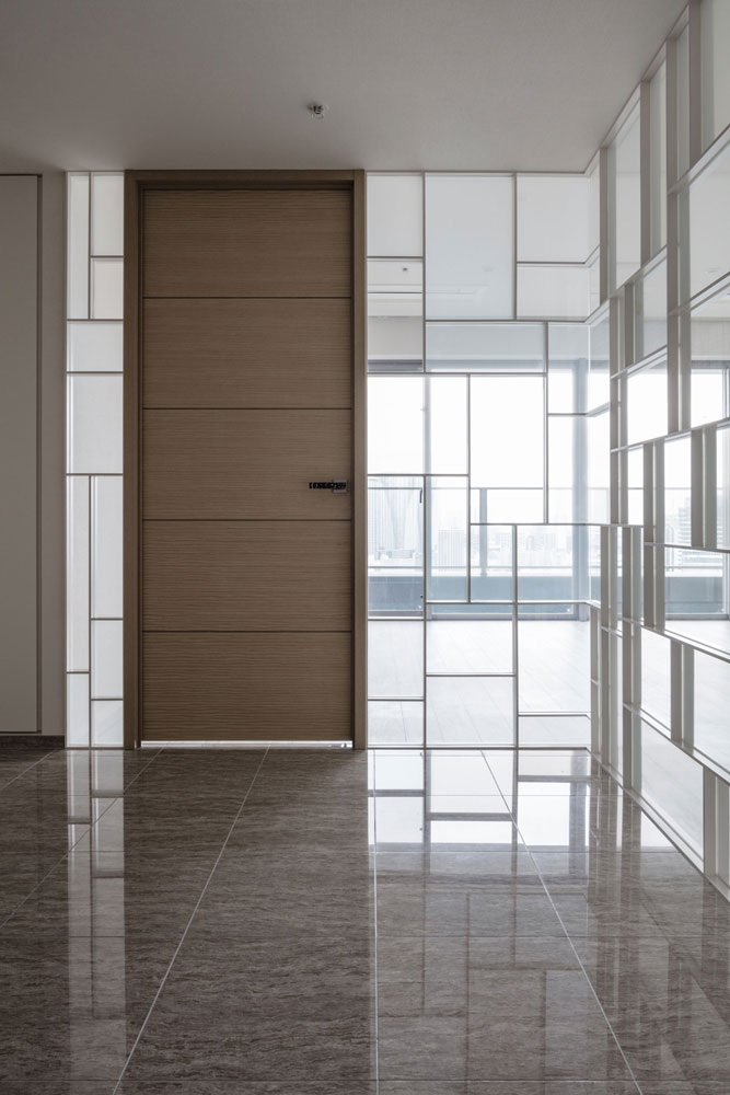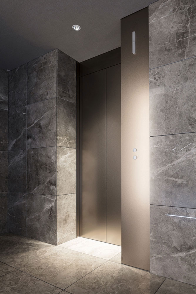 The approach-conscious entrance façade design raises expectations by seeing the lighting objects hung above the lounge at the end of the planting. We were greeted by the entrance lounge, which has a large and spacious stance that gently leads from the hustle and bustle of the urban space to a relaxing space as a "house", and high-quality light production and art elements. Connect to the exclusive department of the people who live. By folding the details that were particular about the details, we aimed for a high-quality space. And in the shared facilities that pursued the function to complement the function of the exclusive part, there are various lounges overlooking Hamarikyu, guest rooms that imitate the Shioiri pond of Hamarikyu, and a library that creates tranquility in the atrium. I was able to create it through repeated discussions. 2020 Good Design Award.