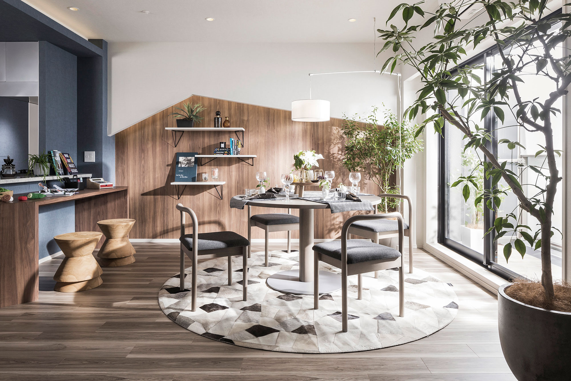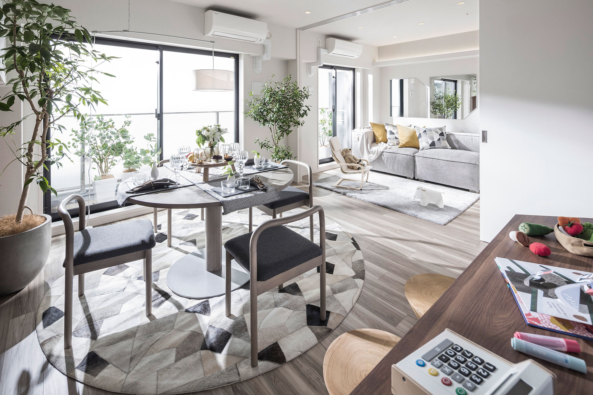 Light-colored flooring, white walls and ceilings allow the light to reach every corner of the space. Designed so that you can feel elegant like a cafe. Despite its casual look, it is designed for light, calm and sophistication.