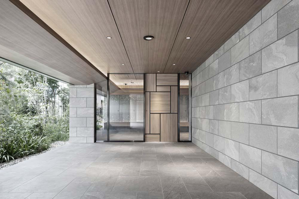 街の持つ歴史的な深みと親和していくことで精神の充足と確かな品格を演出し、先進的な美意識を軸とした構成に素材の持つ表情を調和させることで、日本の伝統に感じる繊細さに自然の素材が持つエッセンスを加え空間の表情を彩る。
