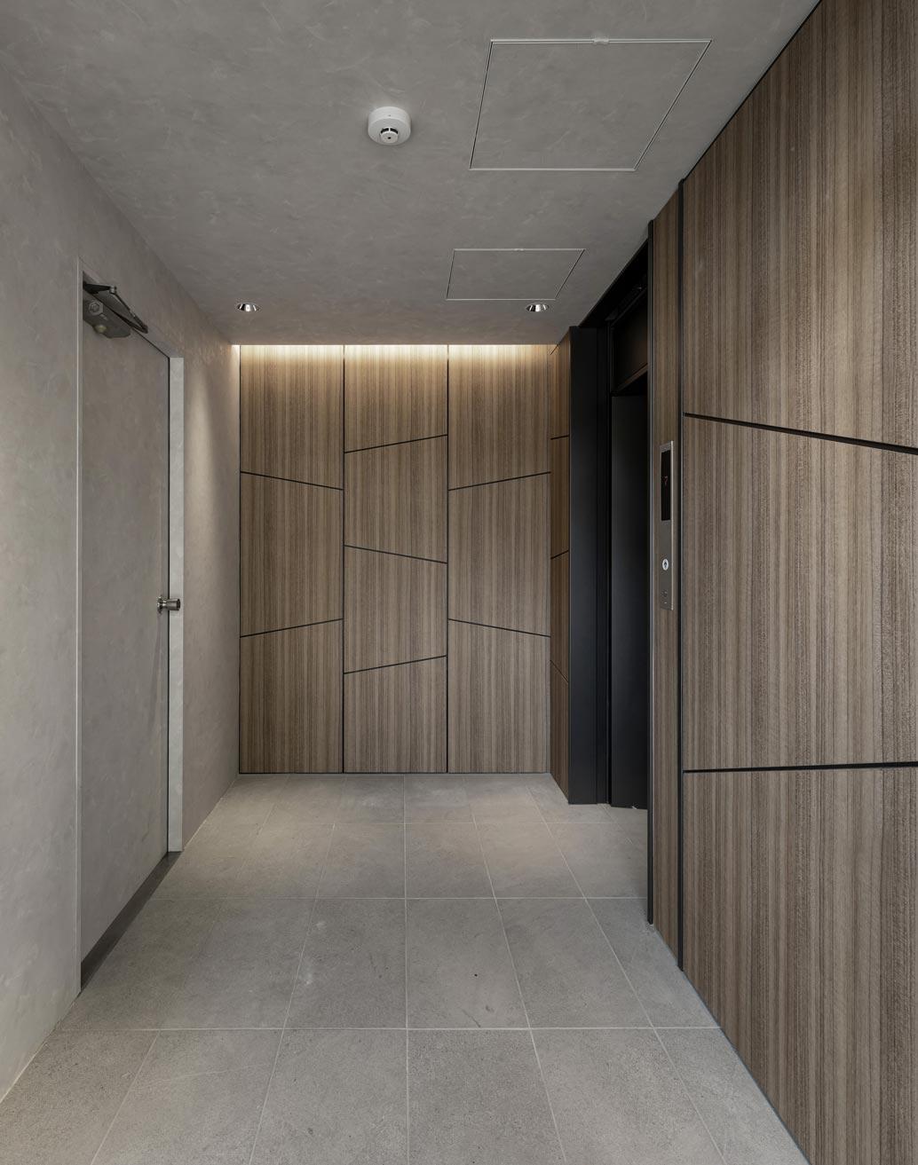 親しみのある木目調の素材を使用することにより自然の優しさや安心感を与え、ボリュームを分節することで存在感のあるもの同士を共存させる。「自然と都市」「外と内」をモチーフとし、多忙な日々の中、美しさと優しさを構成した空間で洗練さを享受する。