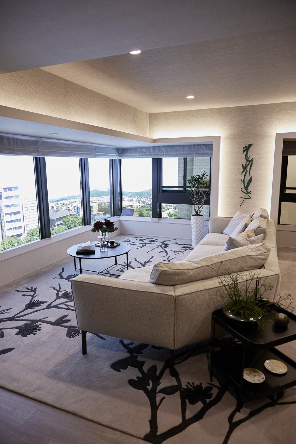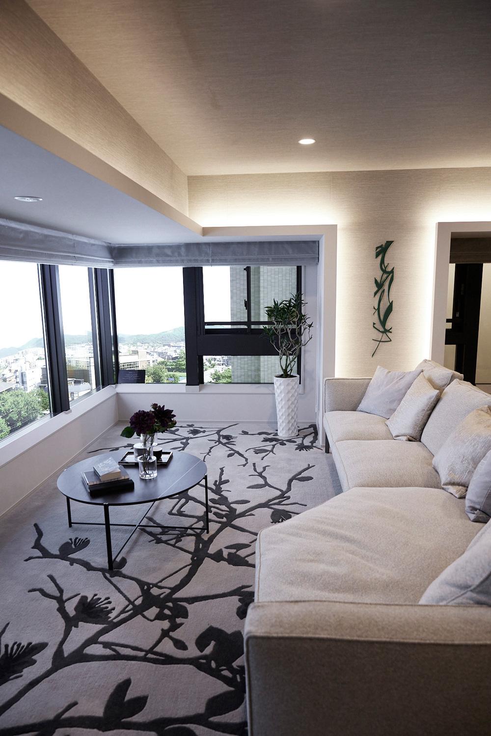 新しい京都のライフスタイルを具現化することをテーマに、モダンでシンプルながらも上質な空間を目指している。ディティールにこだわり、家具やアートがここちよく調和している。